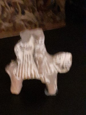 Figur ist als rudimentäres Pferdchen mit einem an den Hals angeschmiegten